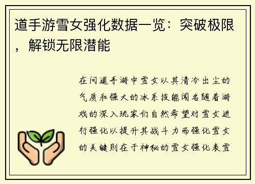 道手游雪女强化数据一览:突破极限,解锁无限潜能